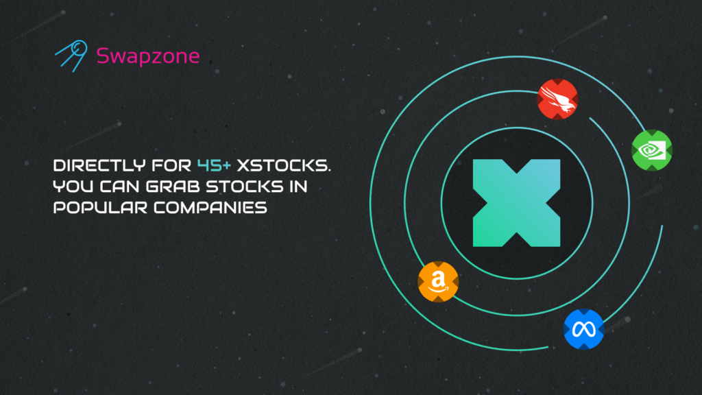 Swapzone has got you covered with access to 45+ main xStocks – including the big tech leaders (Tesla,Apple,Nvidia,Microsoft,Amazon), the top financials (Goldman Sachs,Berkshire Hathaway,JPMorgan Chase), the key healthcare players (AstraZeneca,Open) and a range of diversified ETFs (S&P 500,Nasdaq). You can compare rates from multiple sources, swap using Bitcoin, Ethereum or stablecoins – and trade all 24/7 without any KYC hassle. And with complete self-custody – you’ve got complete control over your assets. The future of stock trading is blockchain, after all…